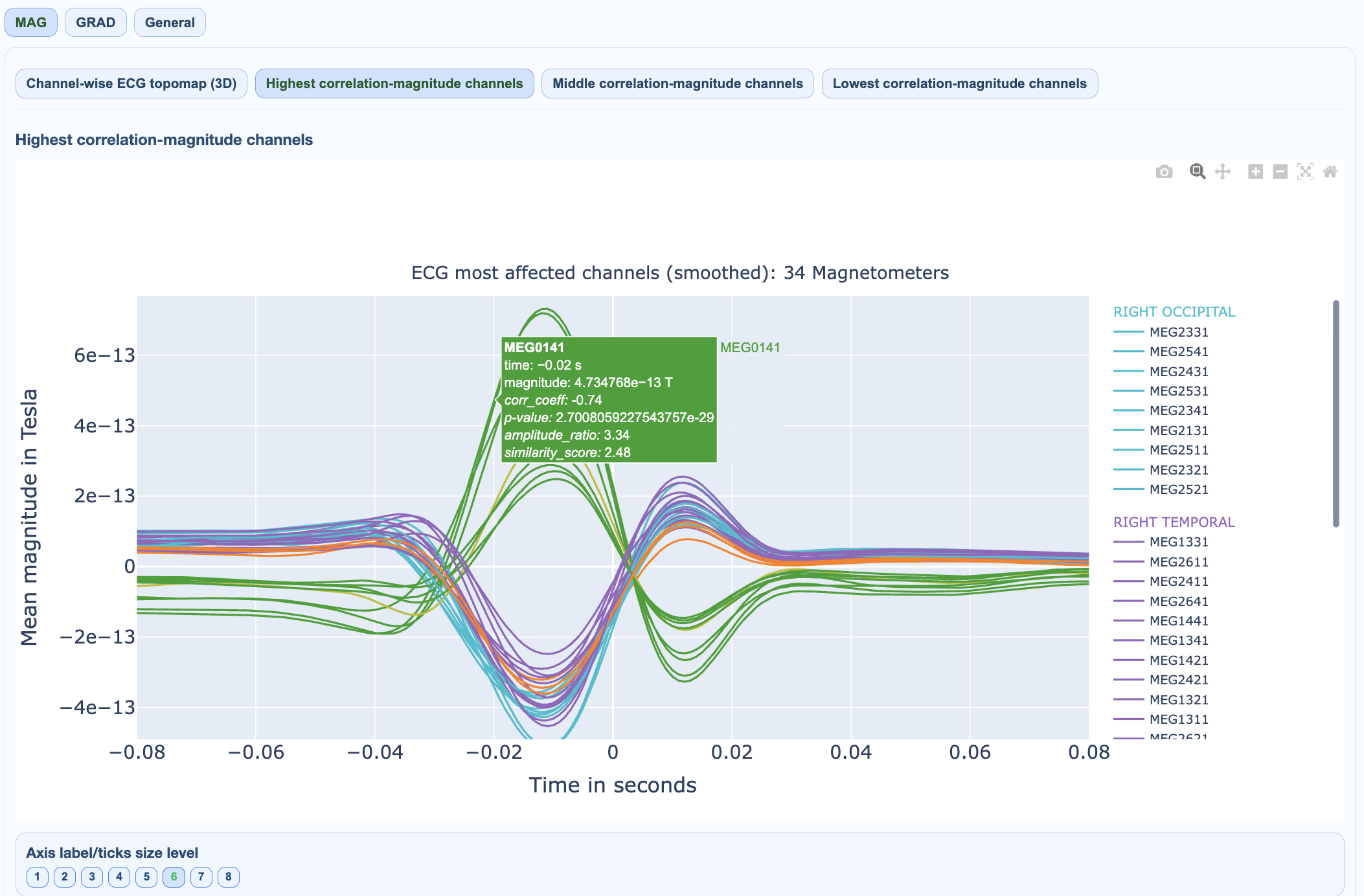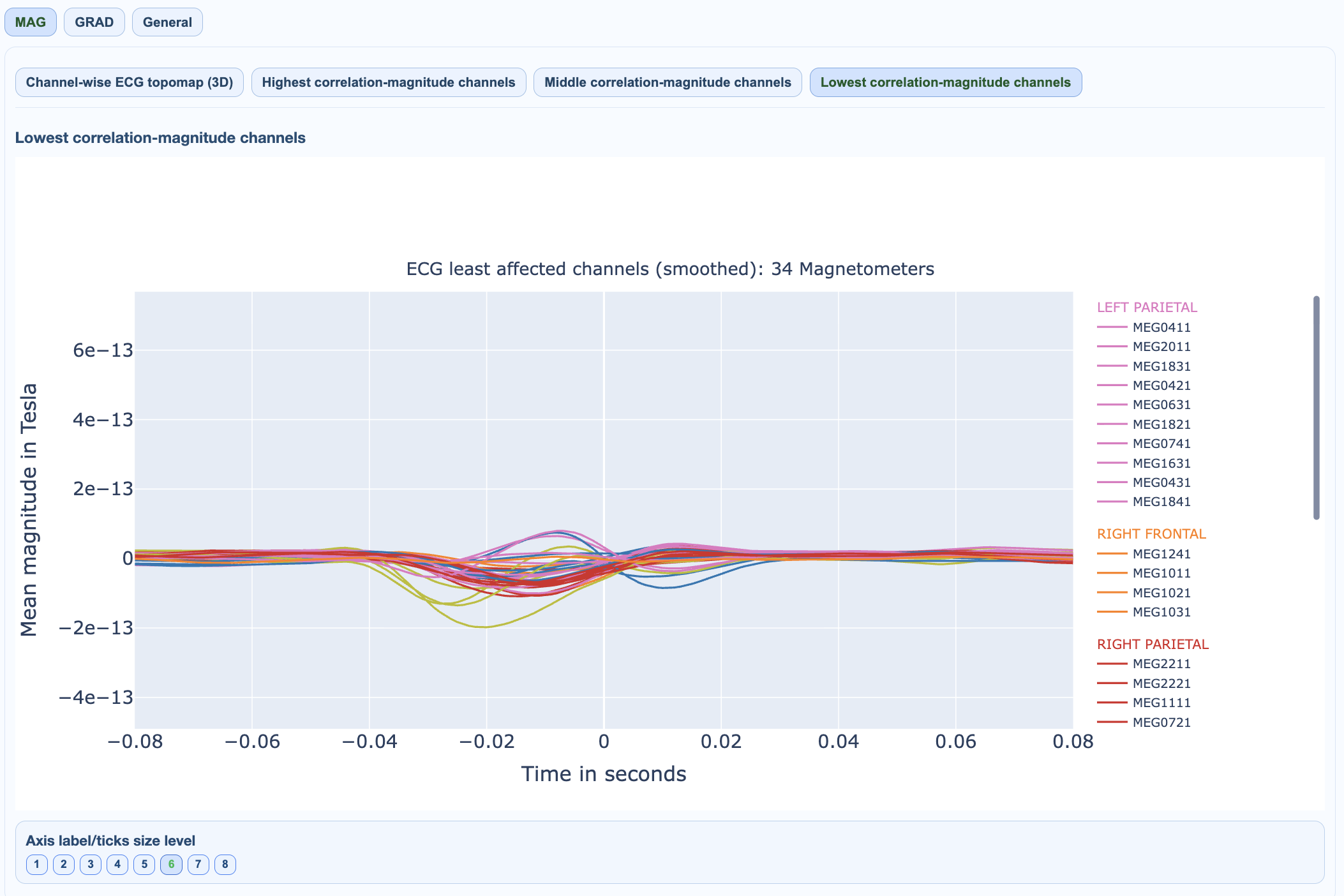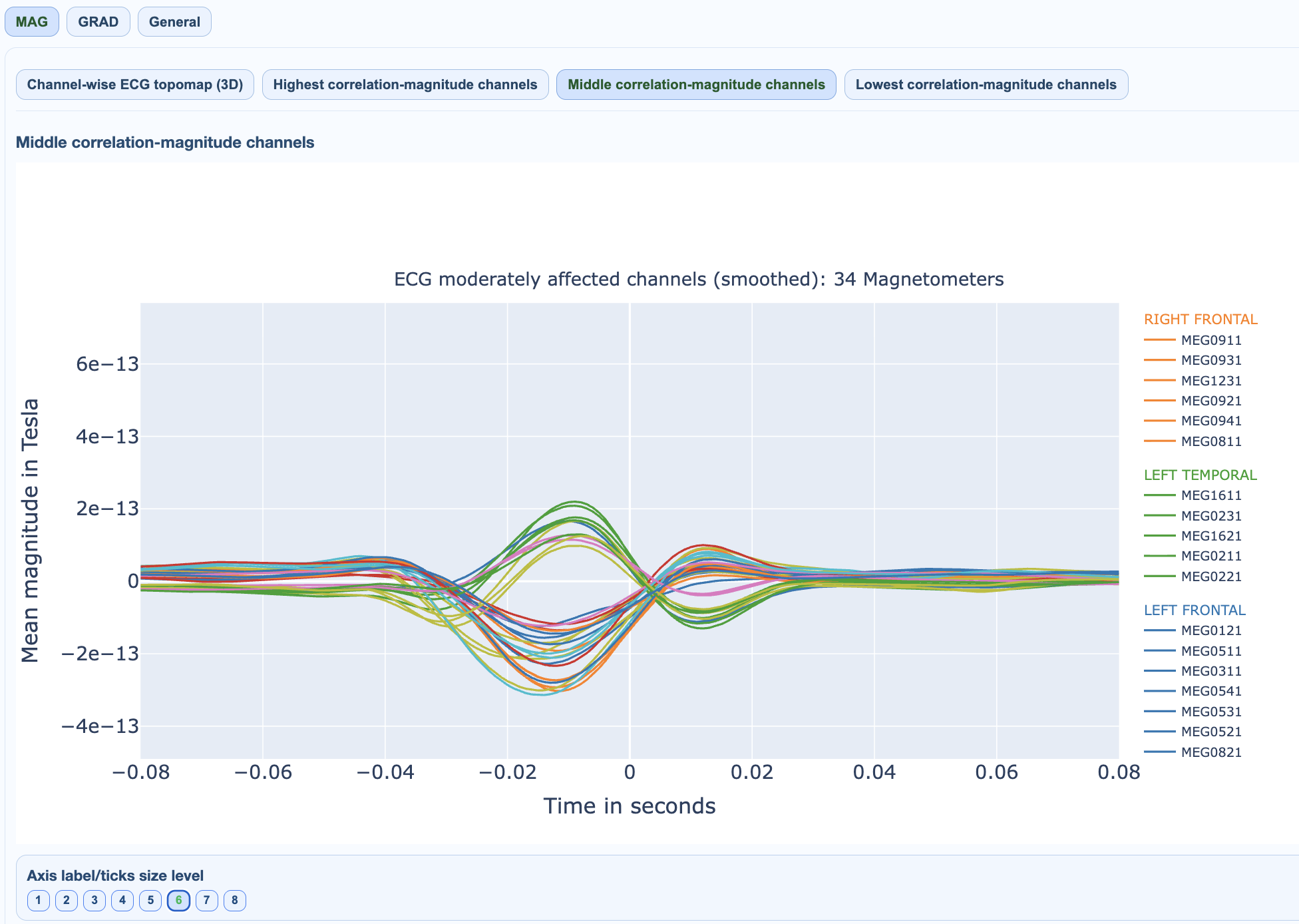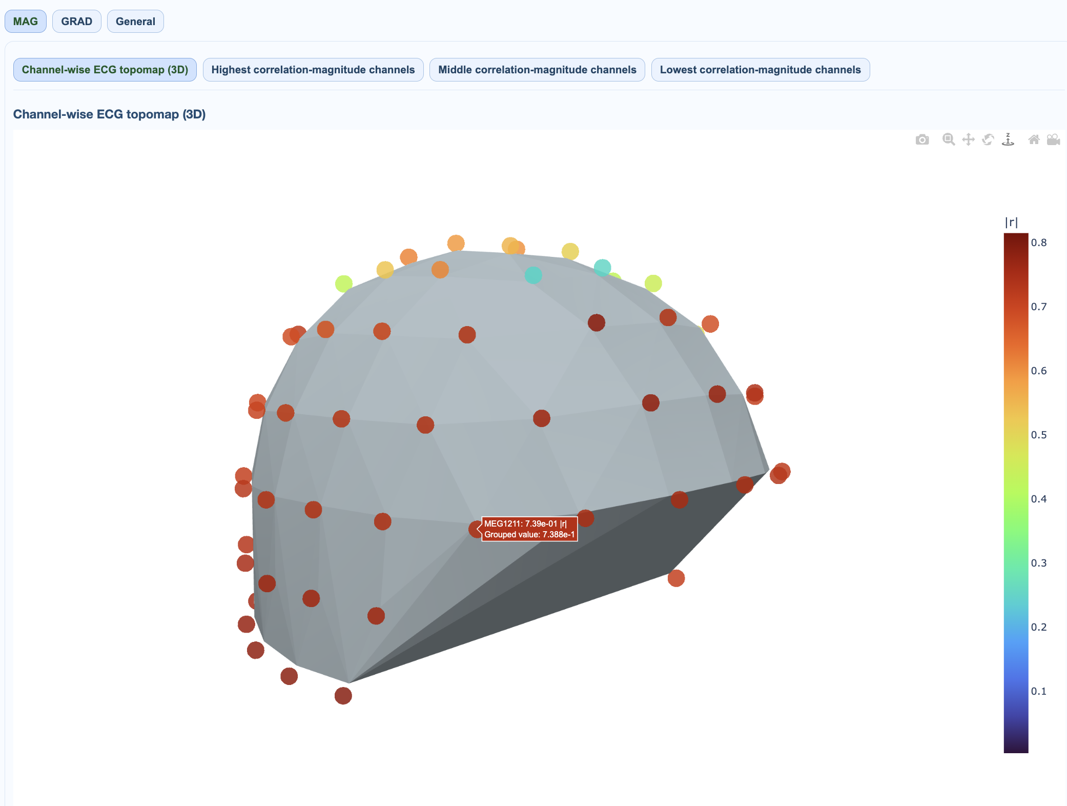 ECG views quantify coupling between ECG reference activity and MEG channels.