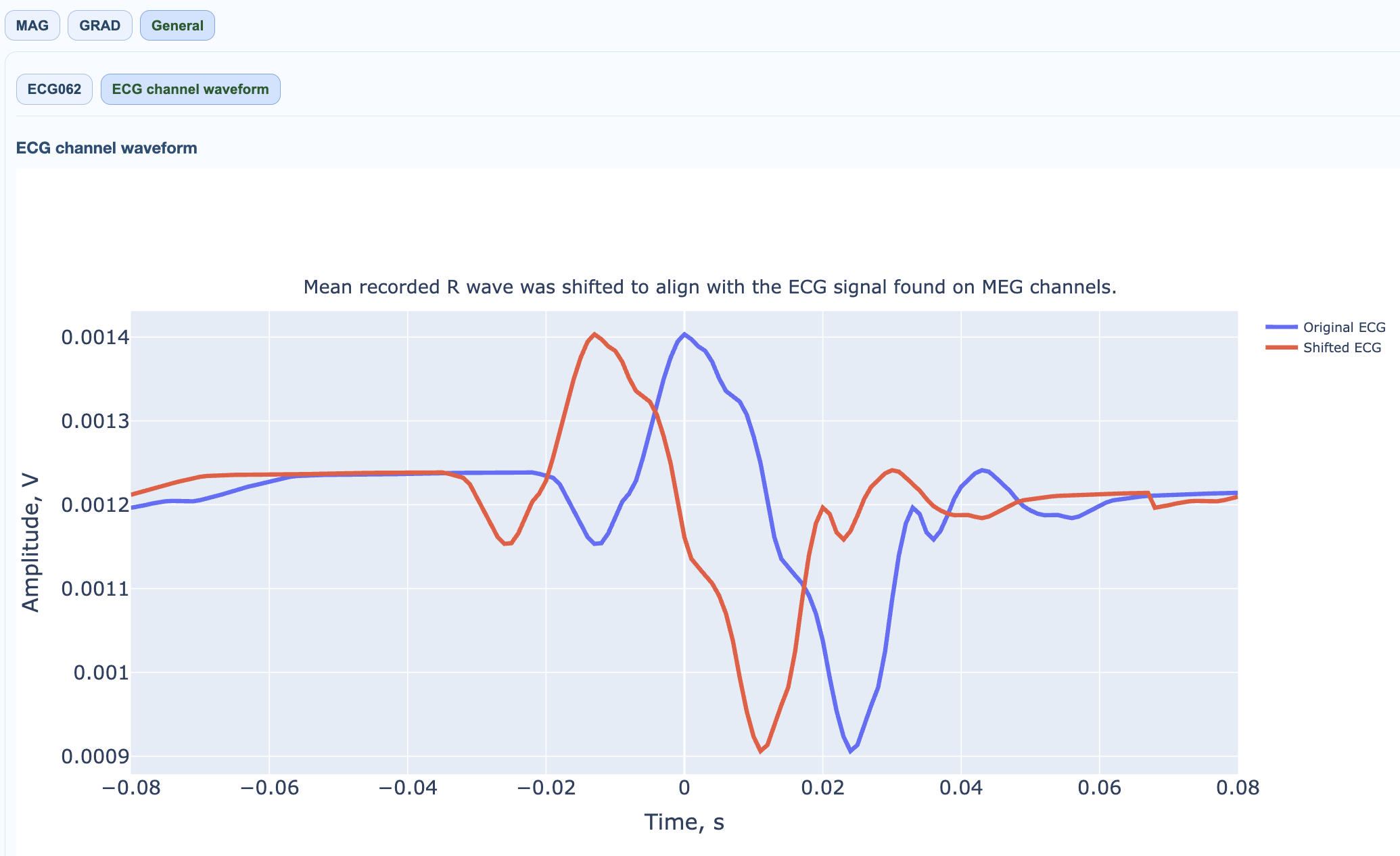 ECG contamination patterns are similar for MAG and GRAD channels, though the spatial distribution may differ slightly. The QC summary provides compact metrics for quick assessment across runs.