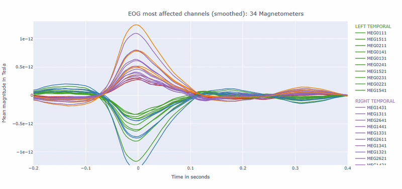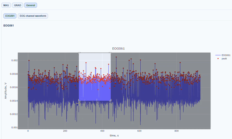 Alongside the MAG and GRAD sub-tabs, in the General sub-tab you can find visualizations of the EOG signal itself.