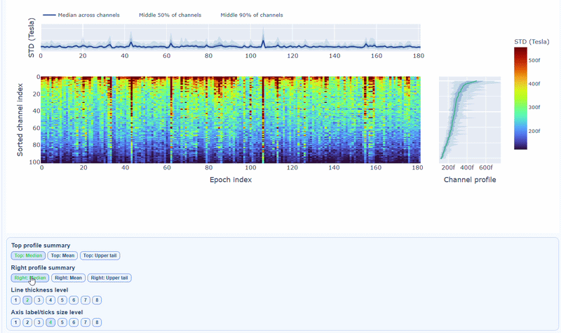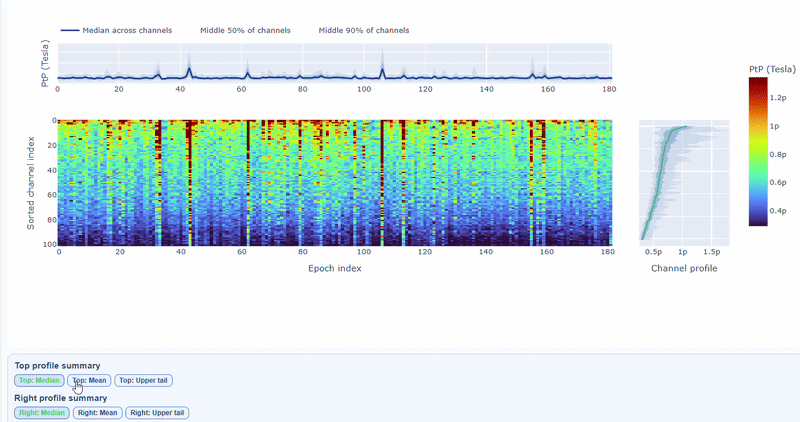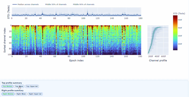 You can also use the menu below to choose between plotting the median, the mean or the upper tail (75th percentile) in the top profile, to better capture different types of epoch-level or channel-level burden.